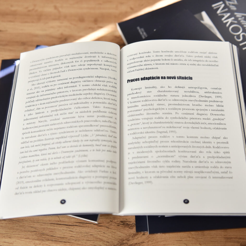 Kniha analyzuje skúsenosti rodín detí s Downovým syndrómom so zreteľom na dynamiku medzi spoločensky zakorenenými stereotypmi a reálnymi životnými trajektóriami, ktoré tieto rodiny prežívajú po narodení dieťaťa.